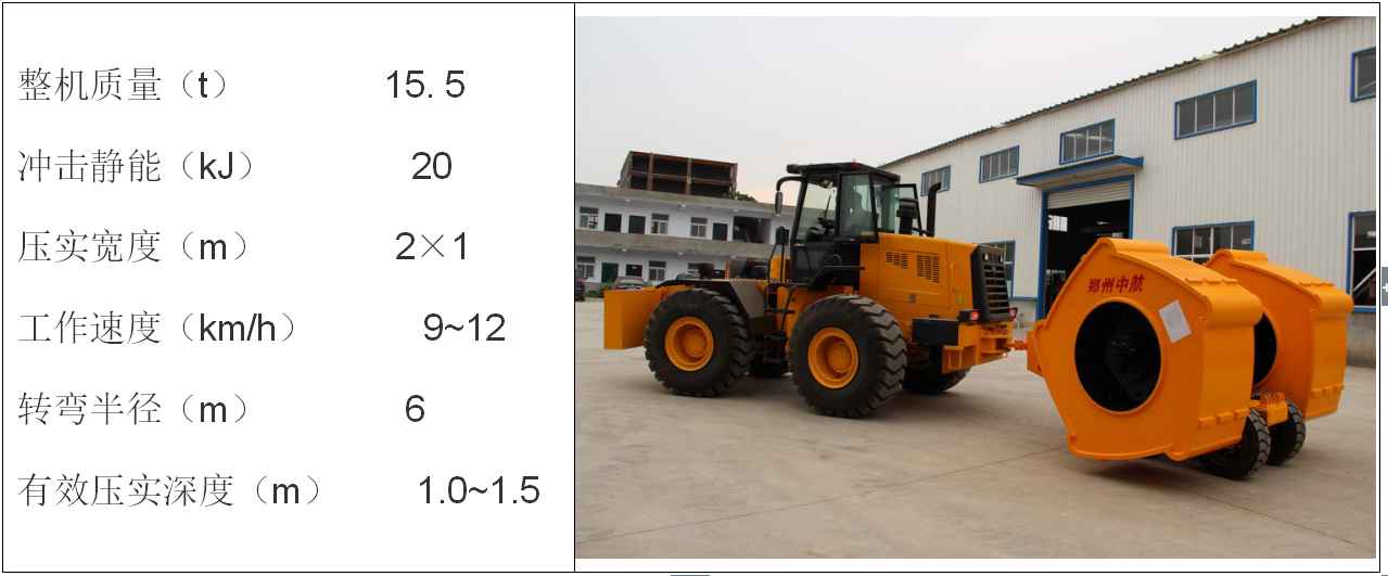 進(jìn)行破碎改建項目的沖擊壓實機一般為30千焦型(太小、太輕則破碎效果不好),其性能參數(shù)如下: