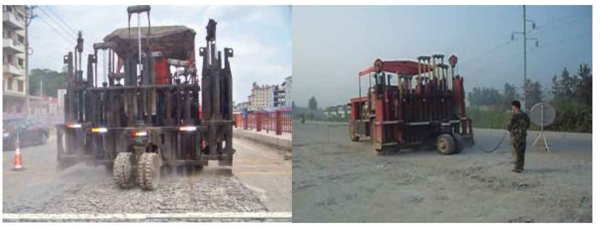 特點:低頻率、大振幅(不同于振動壓路機), 圓周式動力貫入,壓實效果好,費用成本低。