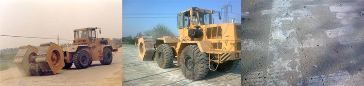 舊砼路面的改建傳統(tǒng)的做法是用重力錘或重力沖擊錘斷裂面板,再用壓路機穩(wěn)壓,上面鋪筑面層。采用沖擊壓路機可以將舊砼路面的破碎與壓實兩個過程合二為一,施工速度比傳統(tǒng)方法快得多。